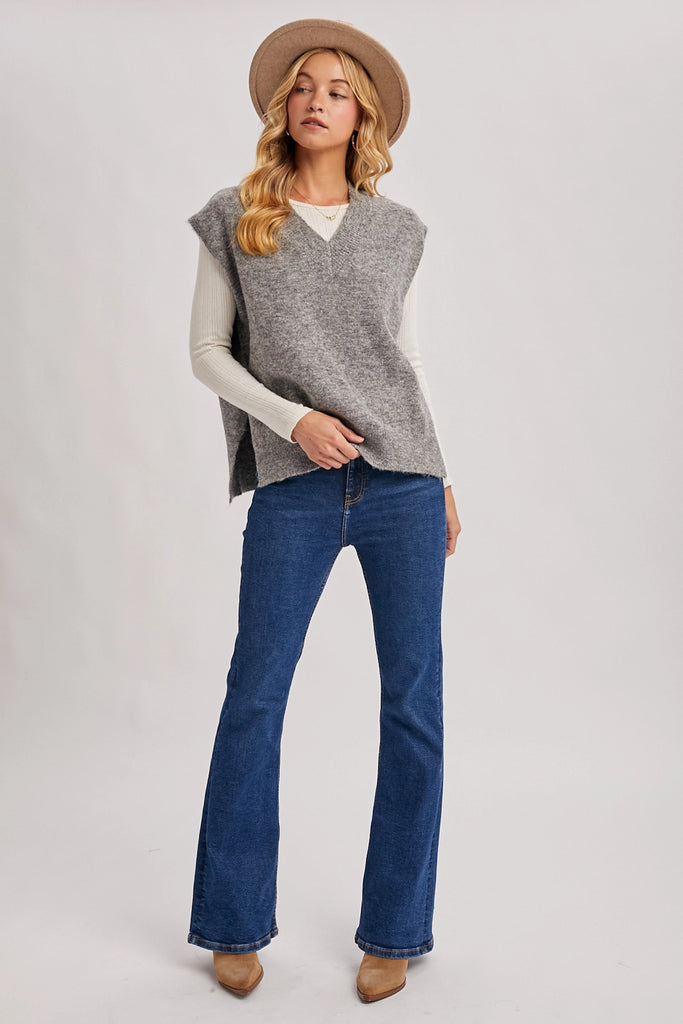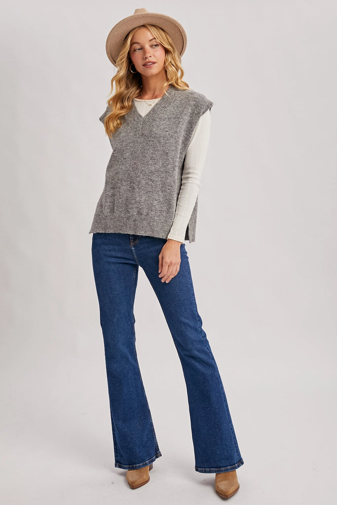 Slip into the Bailey Knit Sweater Vest and instantly upgrade your look! With its cozy grey shade and classic V-neckline, this vest brings timeless style with a fun twist. The ribbed neckline and hem give it a snug fit and a touch of texture that keeps things interesting. Perfect for layering or wearing solo, it’s your new go-to for looking effortlessly cool on any occasion.