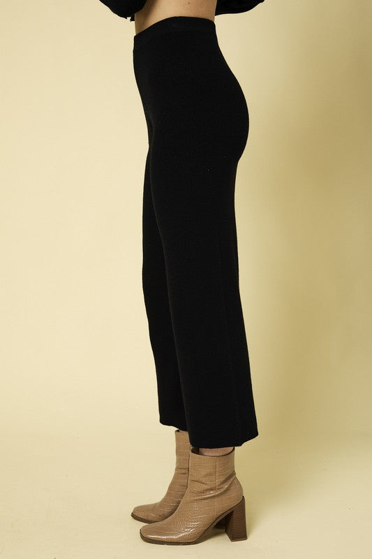 Effortlessly transition from cozy to chic with these black wide-leg sweater pants. Crafted from soft, breathable fabric, they drape beautifully while providing all-day comfort and warmth. The relaxed silhouette flatters every figure and pairs seamlessly with everything from fitted tops to oversized sweaters.