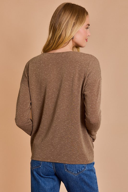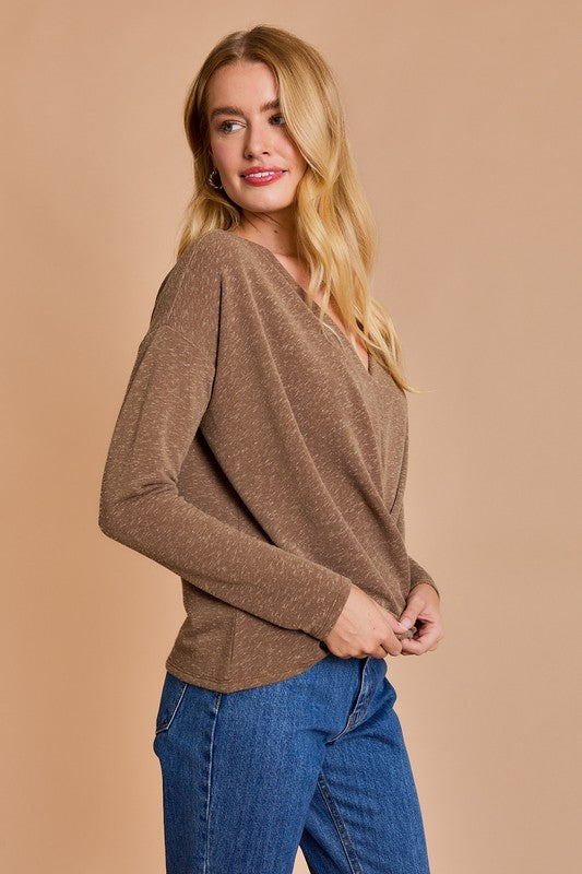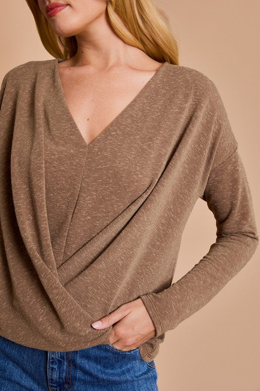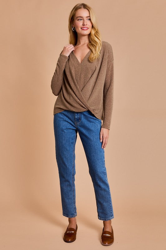 Add a splash of cozy charm to your wardrobe with the "Mila" Surplice Blouse. This mocha-hued, long sleeve V-neck top features a flattering surplice hem that brings a flirty twist to your everyday look. Perfect for layering or wearing solo, its soft fabric and playful design will keep you comfortable and stylish all day long. Embrace effortless chic with a top that's as fun as it is flattering!