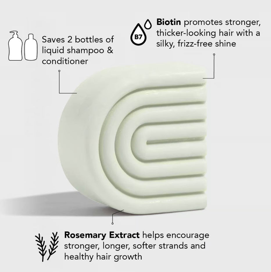 One bar replaces two bottles of liquid, so you're ditching single-use plastic while getting fuller-looking volume. Made in the USA, vegan, and cruelty-free with Leaping Bunny certification.