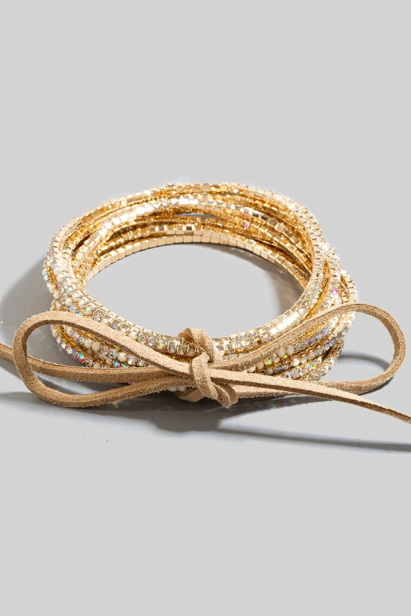 Sparkle on with this dazzling bracelet set! Each piece features shimmering rhinestones pavéd across stretchy elastic bands that hug your wrist just right. Mix and match the collection to create endless arm candy combinations—stack them all for maximum glam or wear them solo for subtle shine.