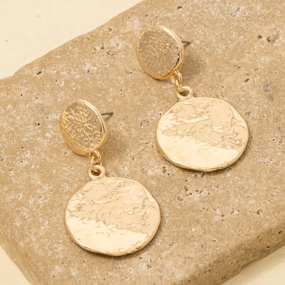 Catch the light and turn heads with these shimmering gold coin dangle earrings. Featuring textured double coins that swing with every move, they bring an effortless boho-chic vibe to any outfit. Perfect for adding a touch of sparkle to your everyday look or elevating your evening style. Mix, match, and make them your own—because life's too short for boring jewelry.