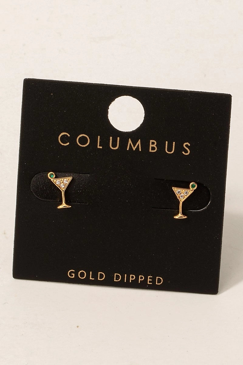 These Martini Glass Stud Earrings showcase a sophisticated design with gold-dipped cubic zirconia pave detailing, capturing the elegance of a classic martini glass. Expertly crafted, they add a refined touch to any outfit, making them a timeless accessory for both everyday wear and special occasions.