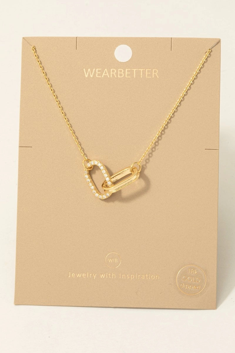 Elevate your everyday elegance with this stunning Oval Link Pendant Necklace, where timeless design meets modern sophistication. Featuring lustrous gold-dipped links adorned with sparkling cubic zirconia pavé detailing, this piece catches the light beautifully from every angle.