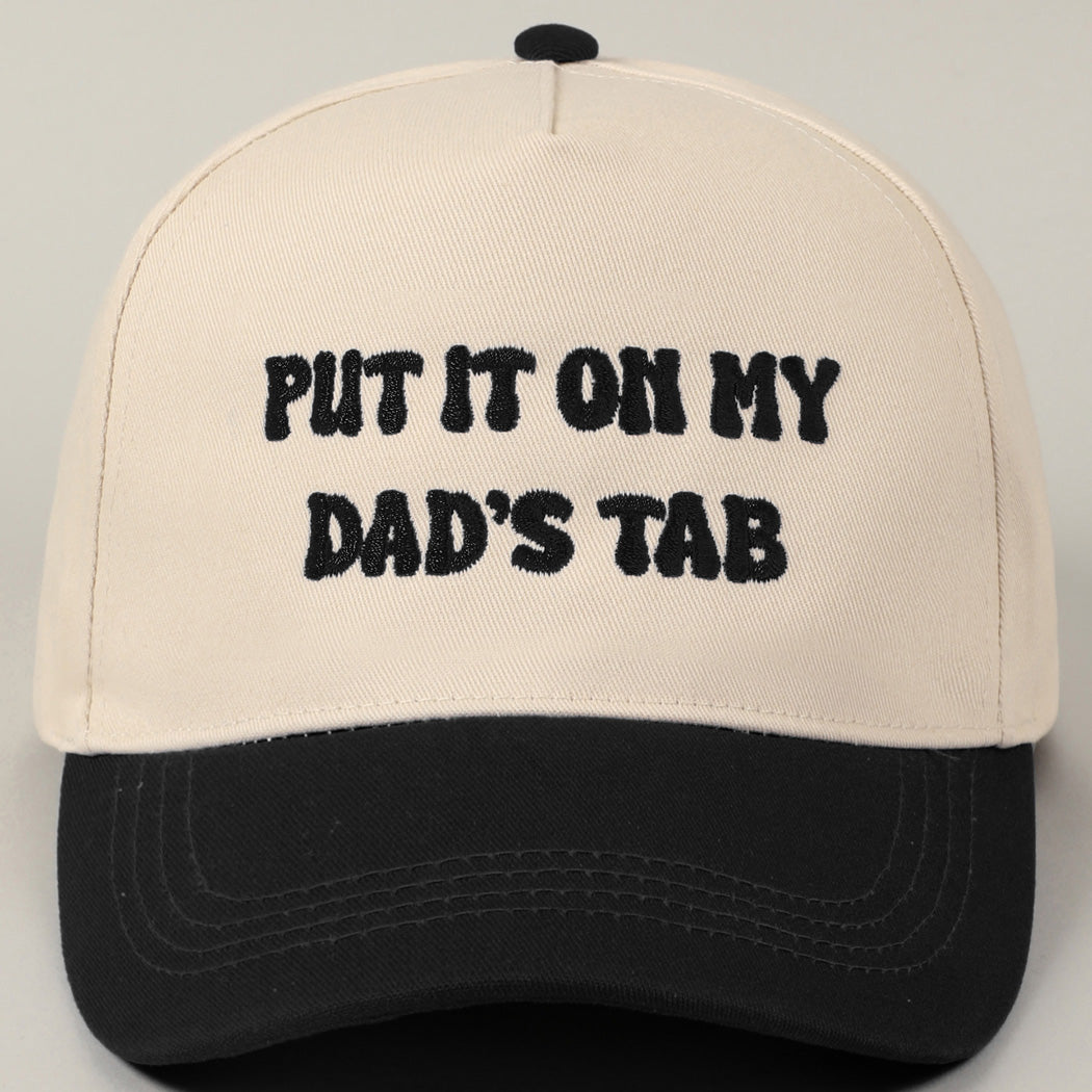This two-tone trucker hat features bold "PUT IT ON MY DAD'S TAB" embroidery that guarantees laughs wherever he goes. Crafted from 100% cotton with a relaxed fit and pre-curved visor, it's designed for all-day comfort.