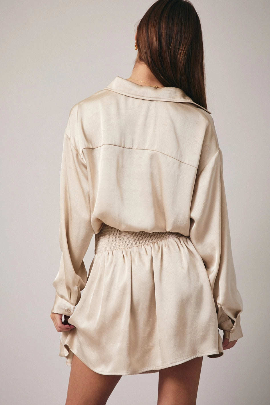 Step out in style with the "London" Dress, a playful oversize shirt dress in a chic champagne shade. Designed with a prop waist that highlights your figure while keeping it fun, this mini dress offers effortless charm and a laid-back vibe perfect for brunch or city strolls. Its relaxed fit ensures all-day comfort without sacrificing flair.