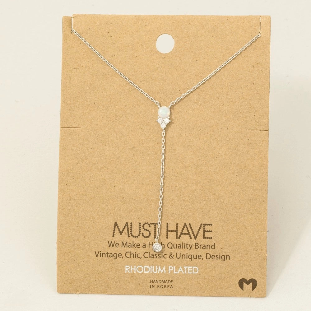 Silver Pearl Y Necklace