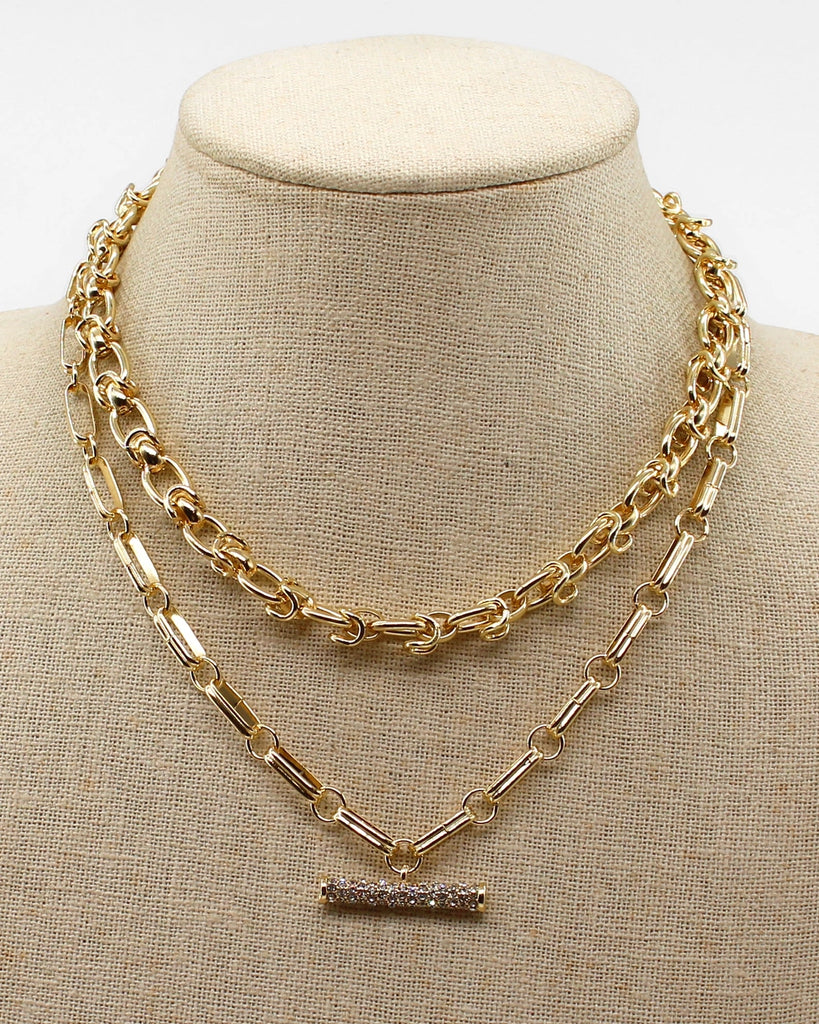 Layered Rhinestone Bar Necklace