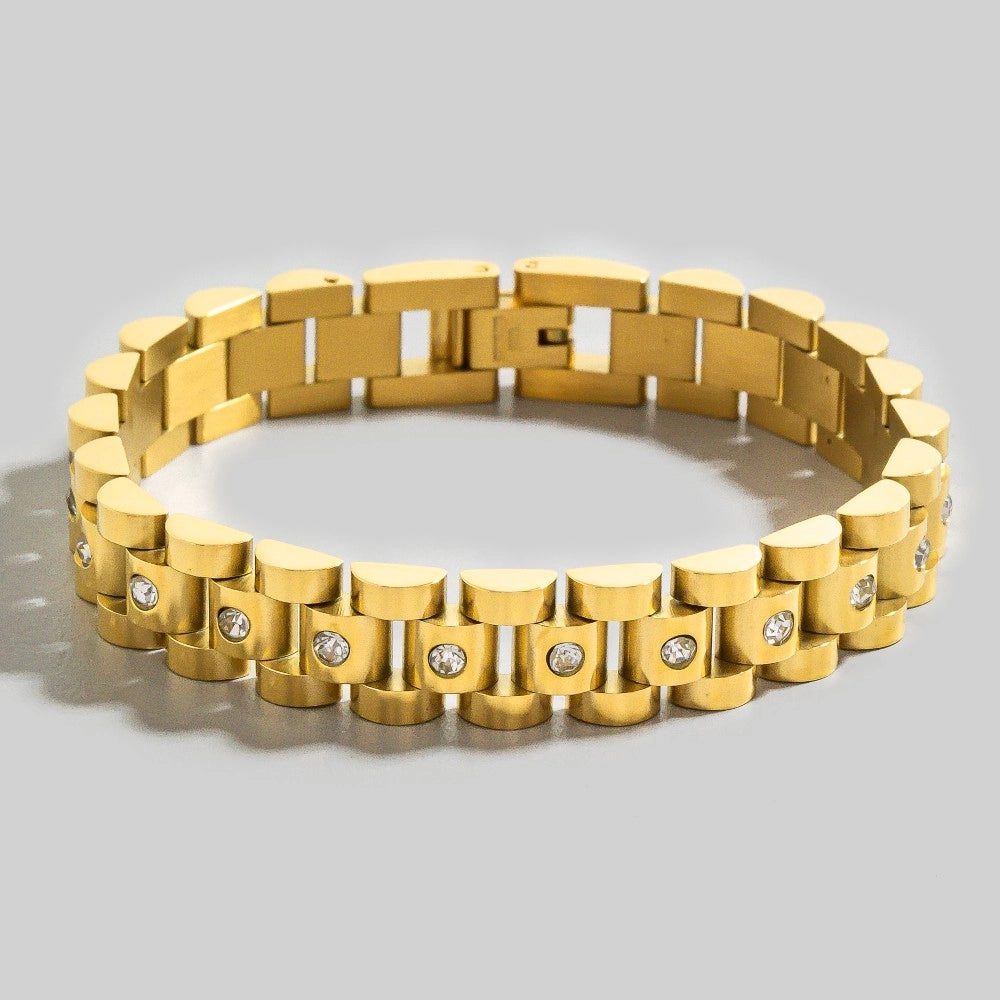 Elevate your wrist game with this edgy stainless steel studded watch chain bracelet—where bold meets brilliant. Crafted from durable stainless steel, this statement piece features eye-catching studs that catch the light and turn heads. Layer it solo for maximum impact or stack it with your favorite bracelets for a personalized look.