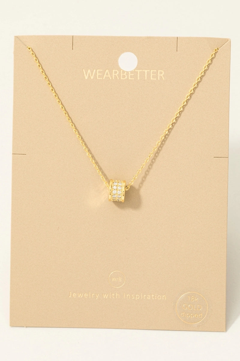 Elevate your jewelry collection with this sophisticated Gold Dipped Cylinder Necklace, featuring a meticulously crafted cubic zirconia pave pendant. The gleaming gold-dipped finish creates a luxurious aesthetic that seamlessly transitions from day to evening wear. Its cylindrical silhouette strikes the perfect balance between contemporary design and enduring elegance, making it an essential piece for those who appreciate refined, versatile accessories.