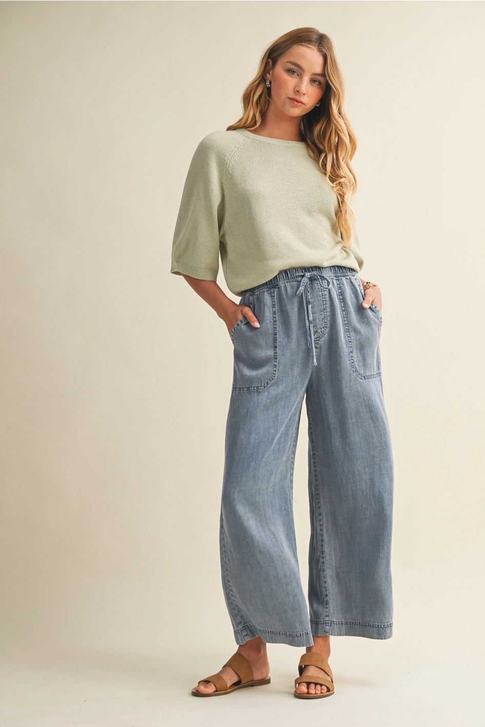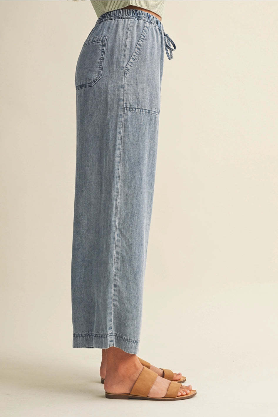 Introducing the "Gina" Denim Pants—your new go-to for effortless cool. Crafted from sustainable Tencel fabric, these cropped beauties offer a perfect blend of comfort and style. The soft, breathable material moves with you throughout the day, while the cropped silhouette keeps things fresh and modern.