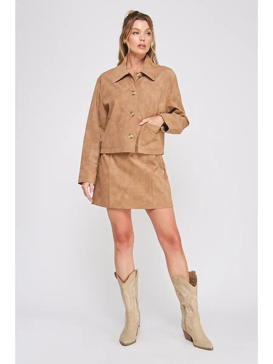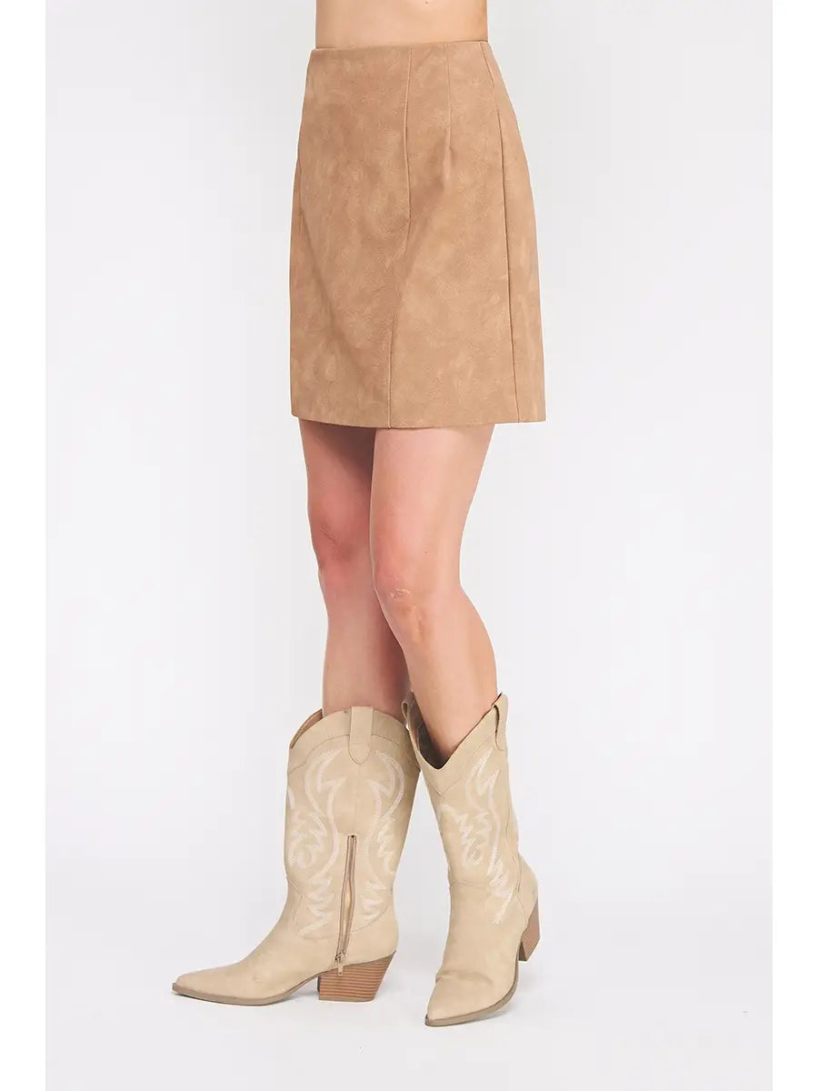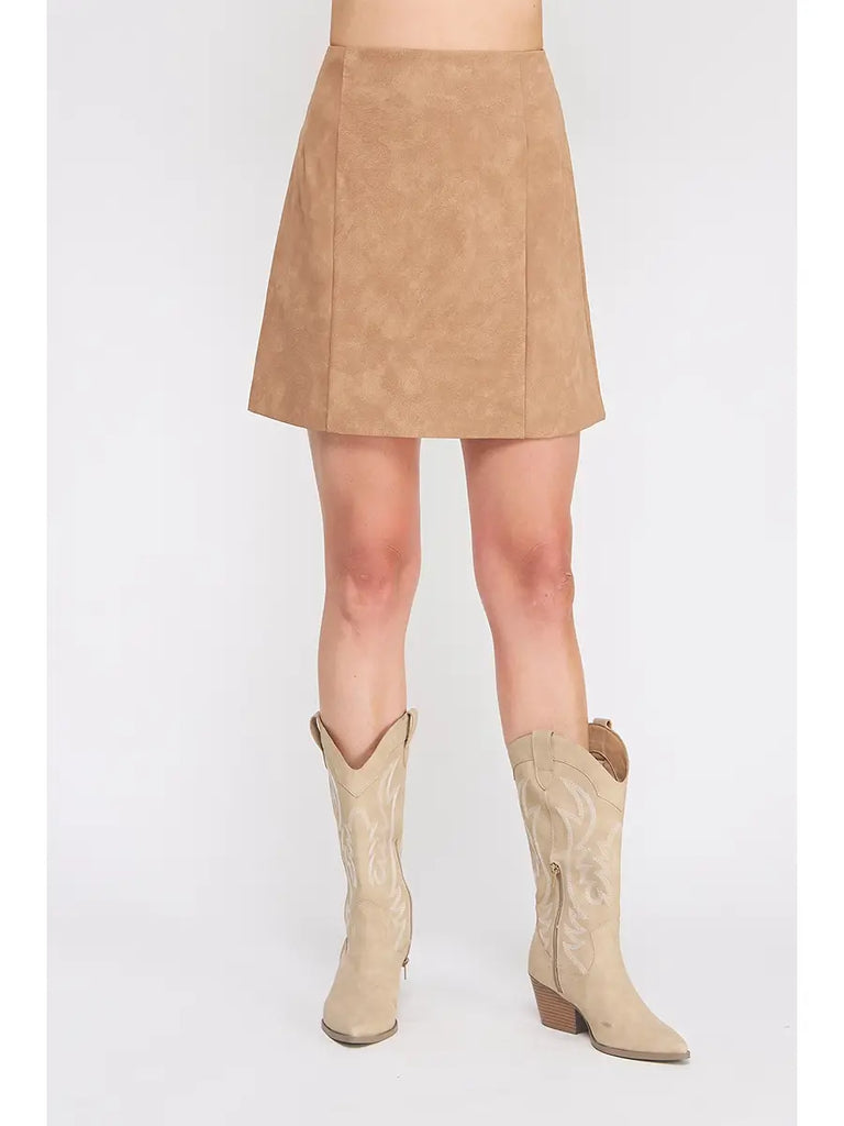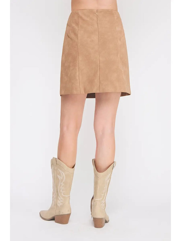 Add a touch of playful edge to your wardrobe with the "Hazel" Vegan Leather Skirt in rich camel. Featuring a sleek back zipper for easy wear, this skirt blends cruelty-free style with a chic, modern silhouette—perfect for turning heads wherever you go!