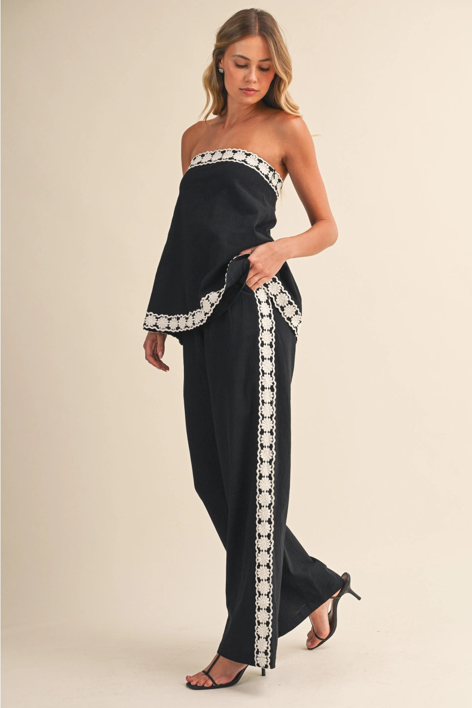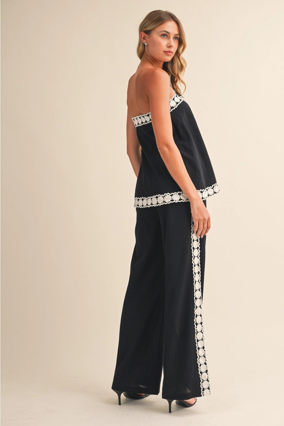 Pair it with our "Kristen" Lace Trim Pants for a Matching Set.