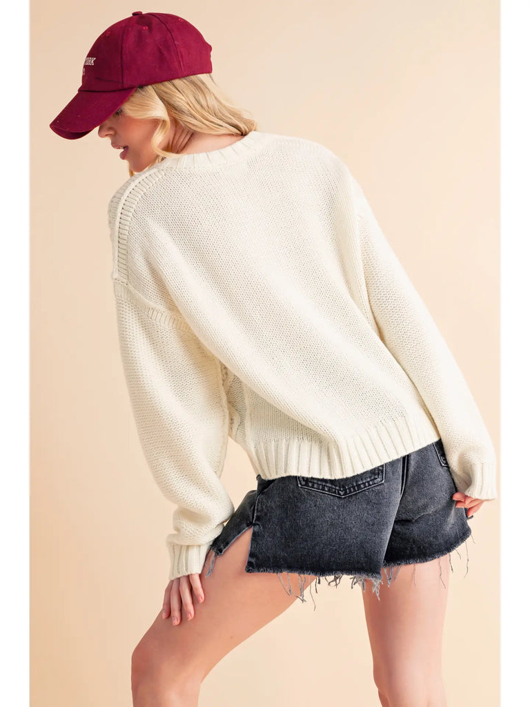 Perfect for layering or making a statement on its own, this sweater brings comfort and playful style together in one.