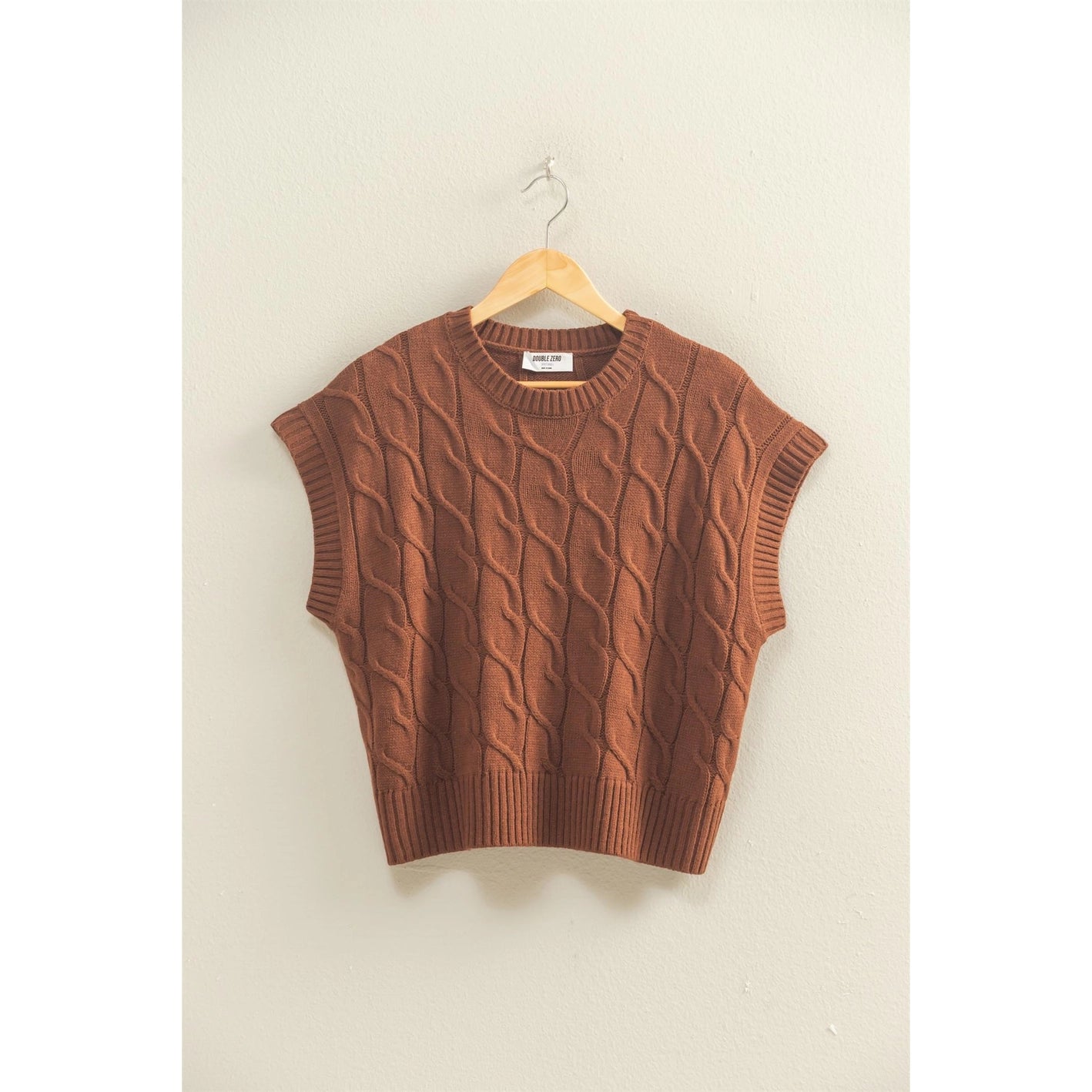 Snuggle up in the "Alexia" Oversized Cable Knit Sweater in warm chestnut. With delightful cable knit details, a cozy crew neck, and playful ribbed edges, this oversized vest keeps you comfy while turning heads. Made from 100% acrylic, it’s soft, easy to wear, and perfect for layering with a fun, stylish twist.